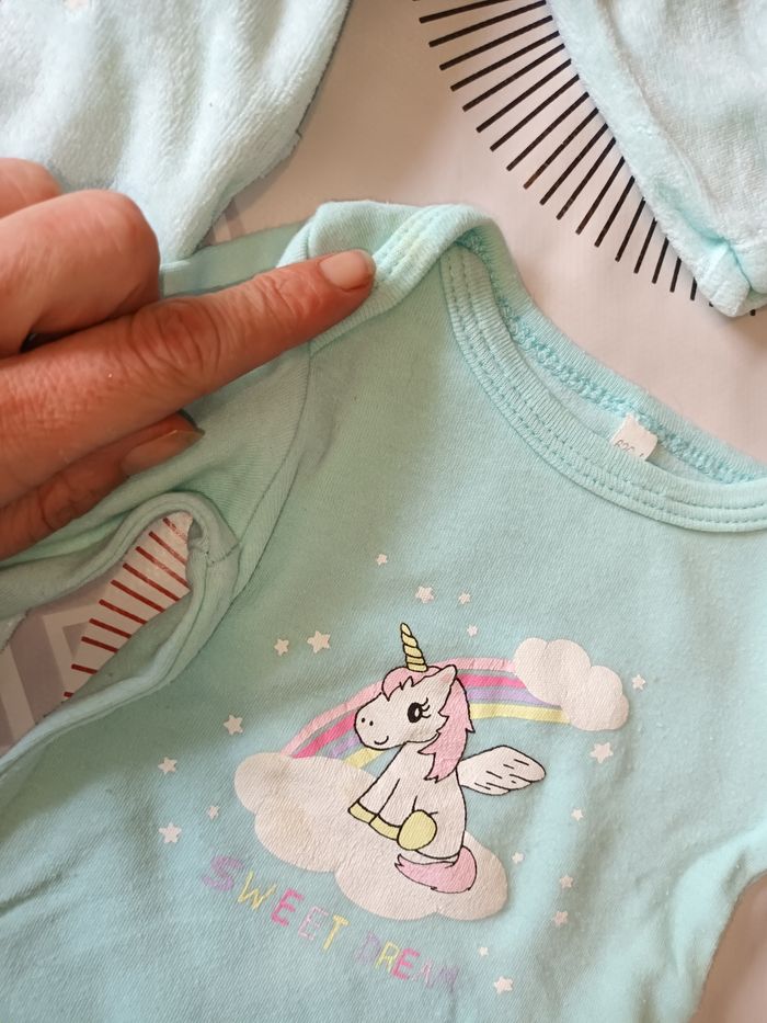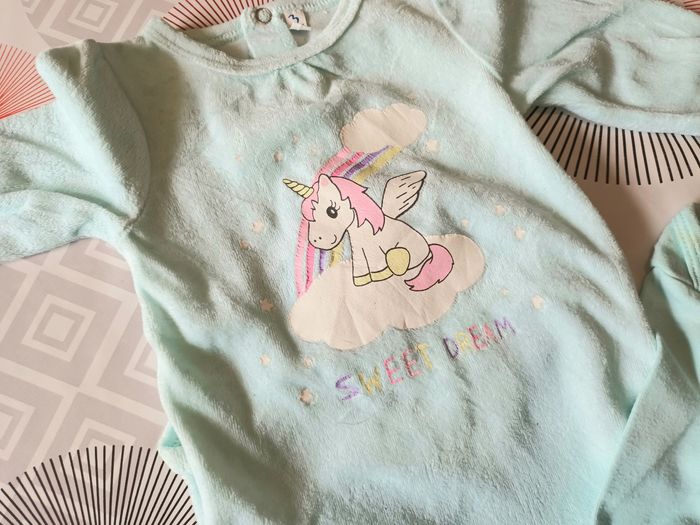 Ensemble pyjama bodie licorne Petite tâche vour photo, je pense qu'elle part au lavage Taille 3 mois 62 cm Marque : ? #mon3moisfilleemilie Remise sur les lots