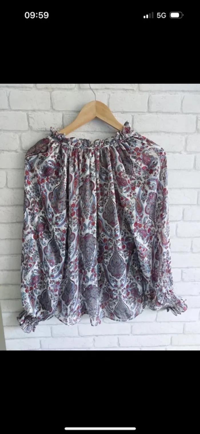 Blouse H&M taille 34 en très bon état. Vous avez des mesures en photos. 100% polyester. Aucune doublure, légèrement transparent !!! #34jenny92360 #xsjenny92360