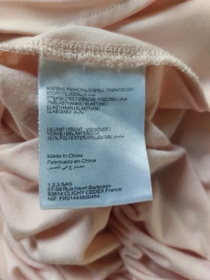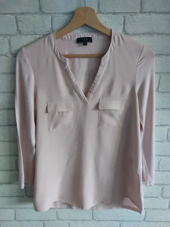Tee-shirt manches 3/4 123 Paris taille 36 en très bon état. Vous avez des mesures en photos. Devant 100% polyester dos et manches 97% viscose 3% élasthanne. #36jenny92360 #sjenny92360