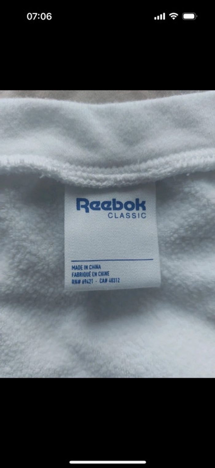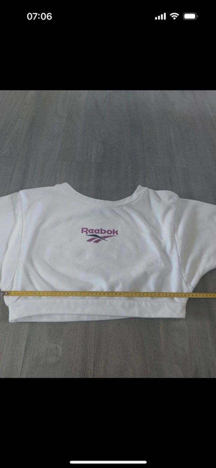 Sweat court Reebok taille XS en bon état. ( 2 petite tâche jaune à peine visible sur la manche droite) 80% coton 20% polyester. vous avez des mesures en photos #xsjenny92360 #34jenny92360 #16ansjenny92360
