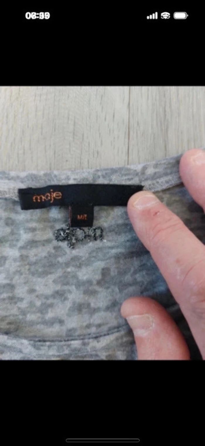Tee-shirt Maje taille M / L en très bon état. Vous avez des mesures en photos. 65% viscose 35% nylon. #mjenny92360 #ljenny92360 #38jenny92360 #40jenny92360 #majejenny92360