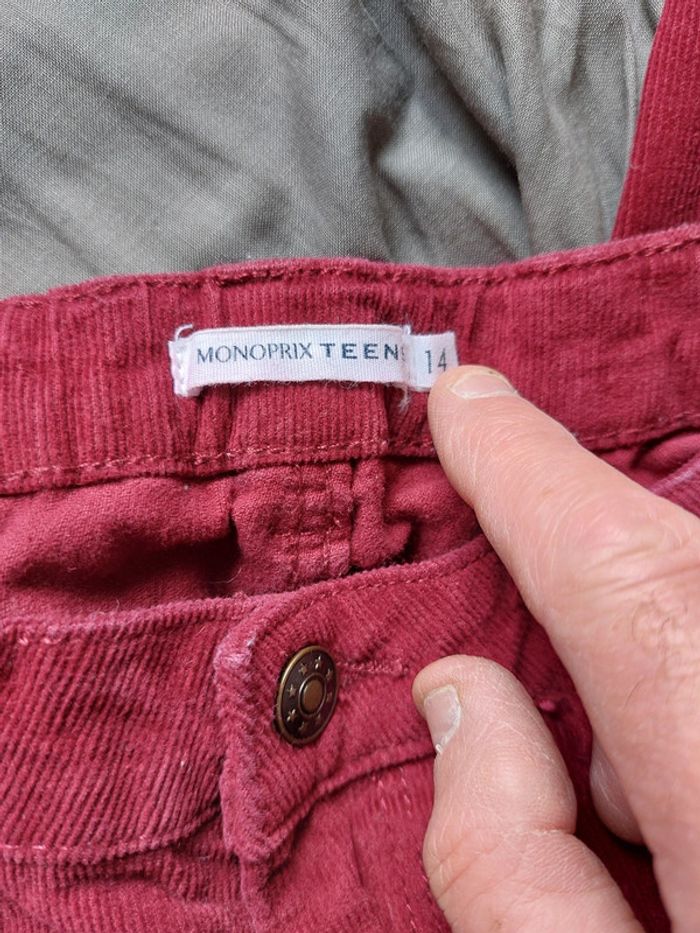 Pantalon velours Monoprix taille 14 ans en très bon état. Ajustable à la taille voir photo. 98% coton 2% élasthanne. #14ansjenny92360