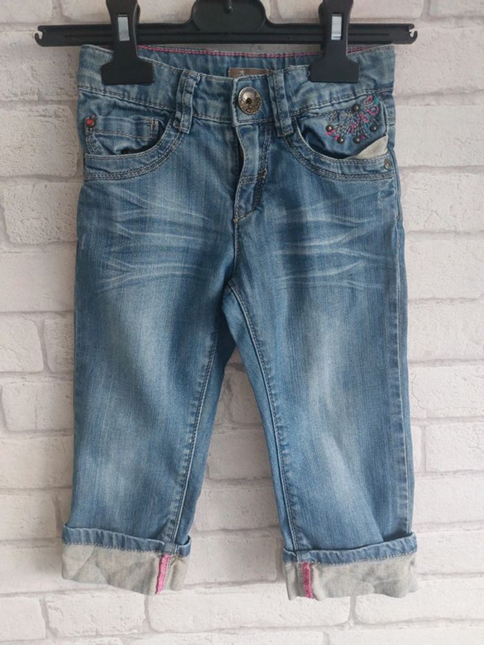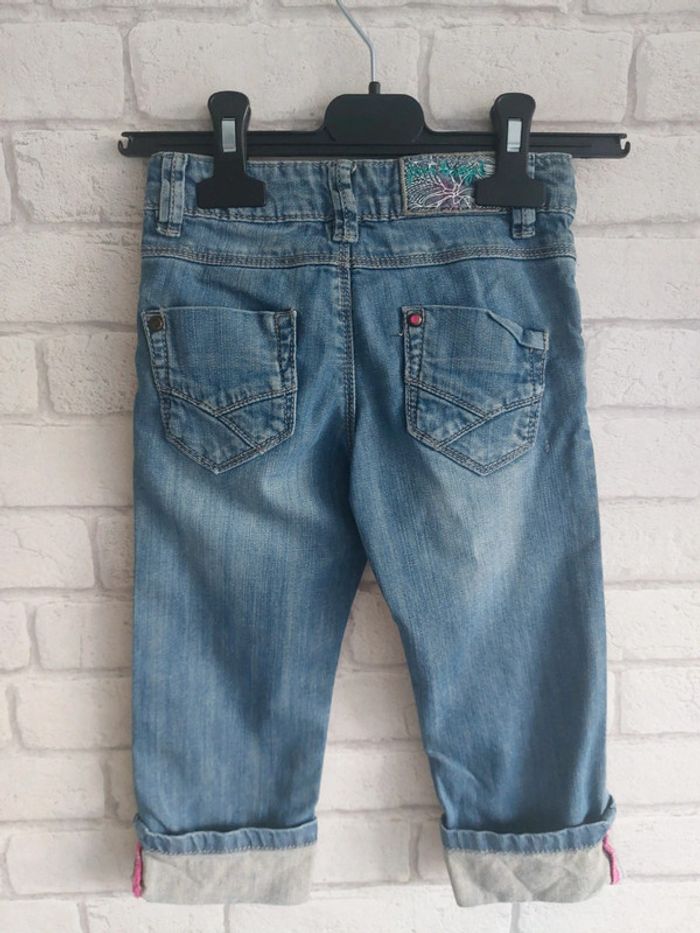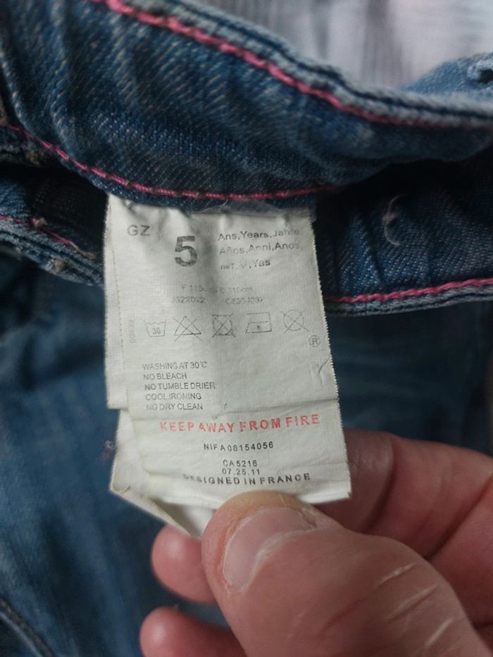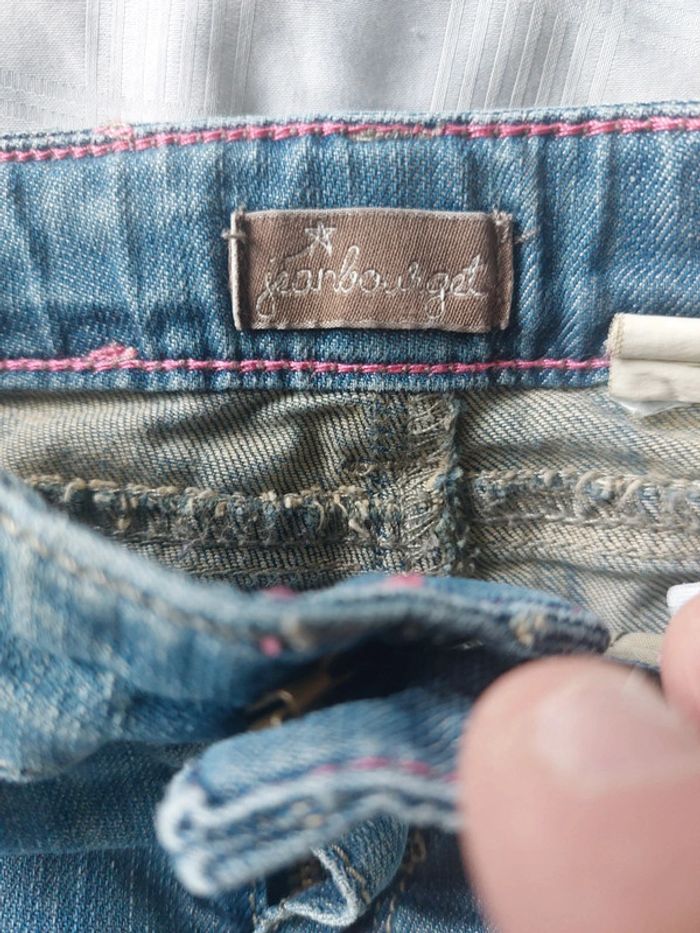 Pantacourt fille Jean Bourget taille 5 ans en très bon état. Ajustable à la taille voir photo. 99% coton 1% élasthanne. Longueur pantacourt 49 cm voir photo. #5ansjenny92360