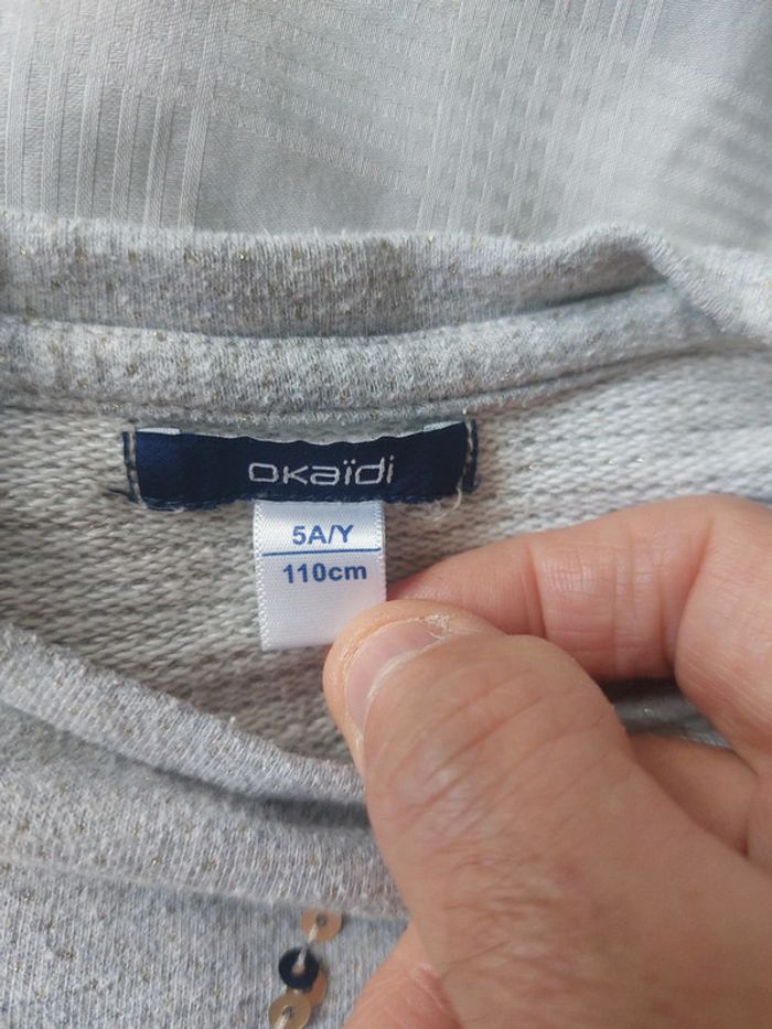 Sweat court Okaidi taille 5 ans / 110 cm en très bon état. 58% coton 41% polyester 1% fibre métallique. #5ansjenny92360