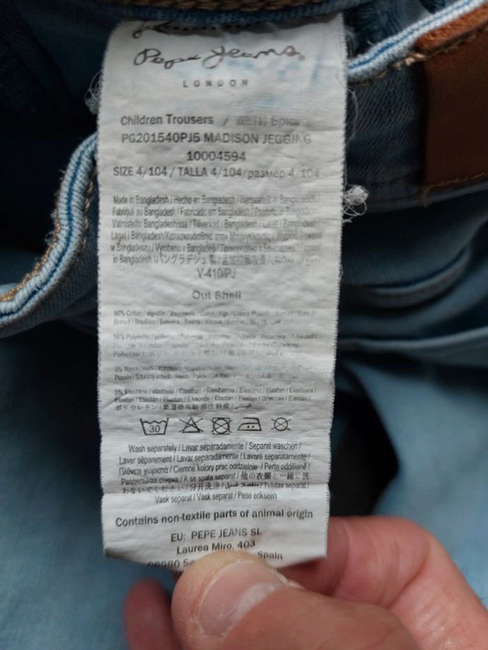 Jeans Pepe Jeans taille 4 ans / 104 cm en bon état. Ajustable à la taille voir photo. 66% coton 26% polyester 3% rayon 3% élasthanne. #4ansjenny92360