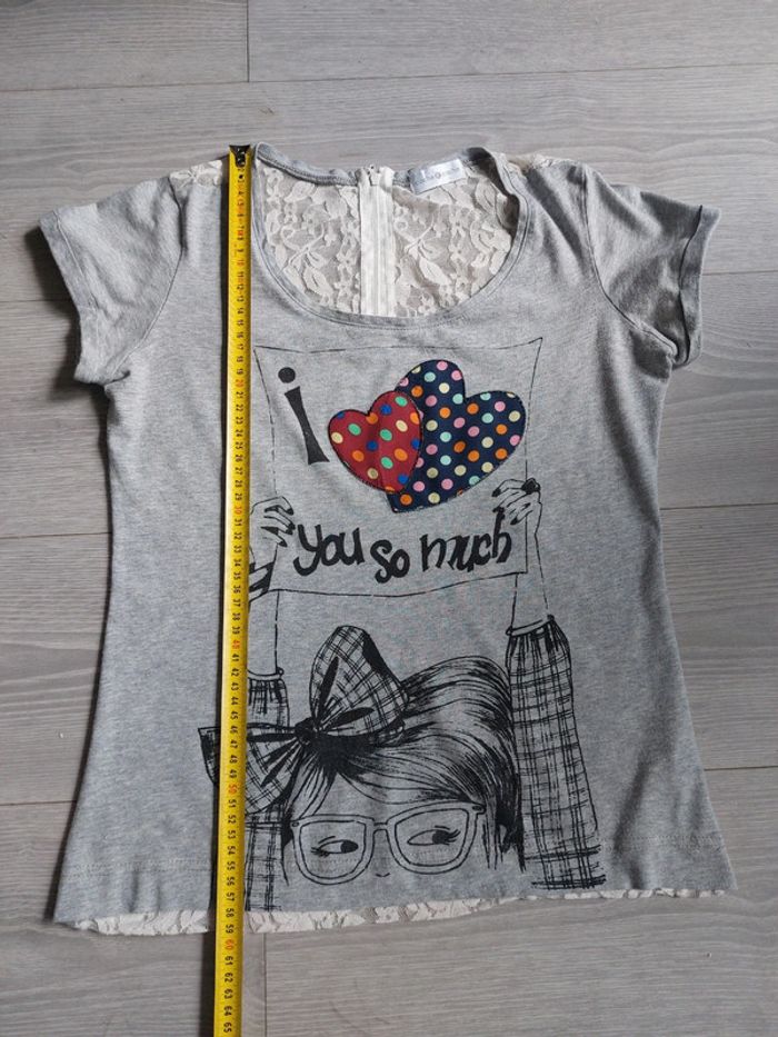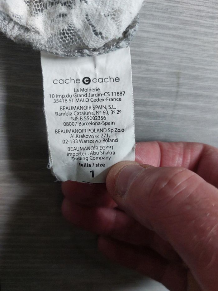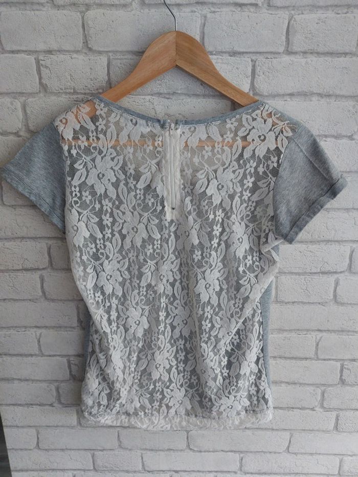 Tee-shirt Cache Cache taille 1 (S/36) en très bon état. Vous avez des mesures en photos. 100% coton / dos en dentelle légèrement transparent 95% nylon 5% élasthanne. #36jenny92360 #sjenny92360 #cachecachejenny92360