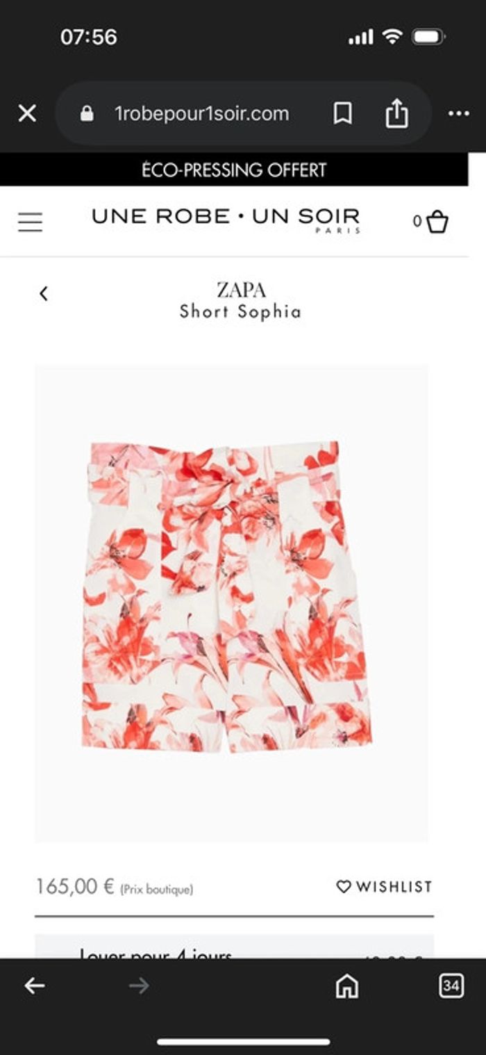 Short taille haute Zapa modèle Sophia taille 34