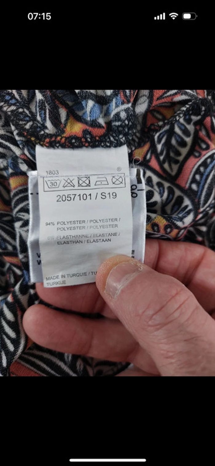 Blouse manches courtes taille 3 (40,L) en très bon état. 94% polyester 6% élasthanne. Vous avez des mesures en photos. #40jenny92360 #ljenny92360