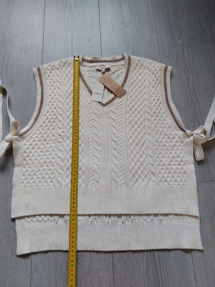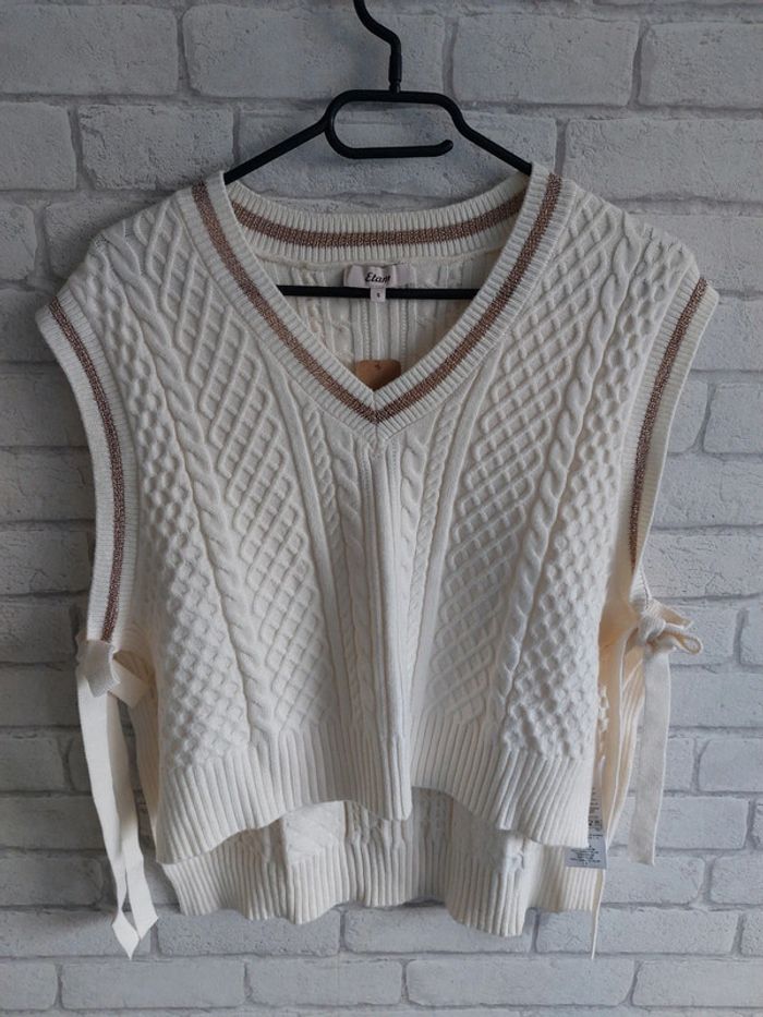 Pull sans manches col V Etam taille S neuf avec étiquette. Vous avez les mesures et les matières du pull en photos !!! #sjenny92360 #36jenny92360 #etamjenny92360