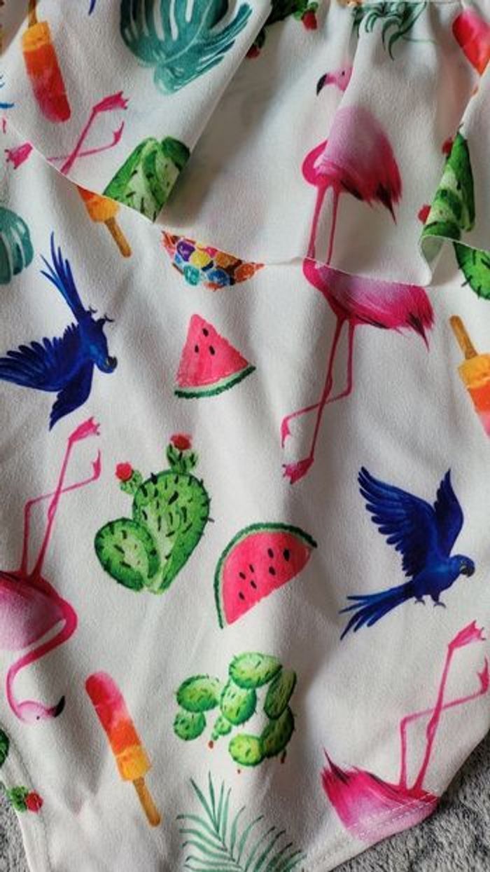 Très joli body à volants Possibilité de le porter épaules dégagées Imprimé tropical