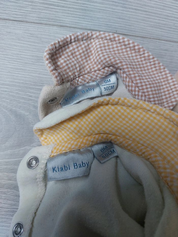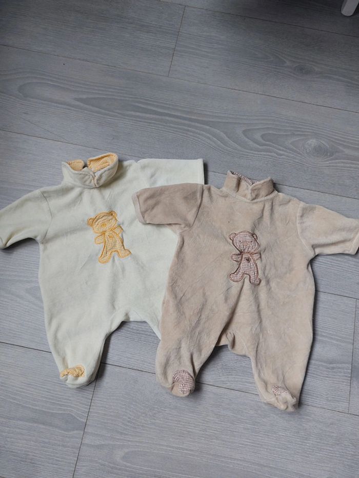 Lot de 2 Pyjamas Kiabi taille naissance / 50 cm en très bon état. 76% coton 24% polyester. 1 couleur Jaune, 1 couleur beige. #naissancejenny92360