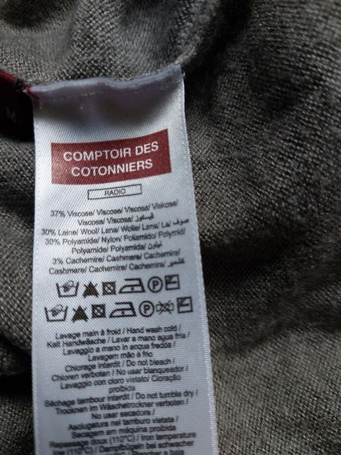 Pull Comptoir Des Cotonniers taille M en très bon état. Vous avez des mesures en photos. 37% viscose 30% laine 30% polyamide 3% cachemire. #mjenny92360 #38jenny92360 #comptoirdescotonniersjenny92360