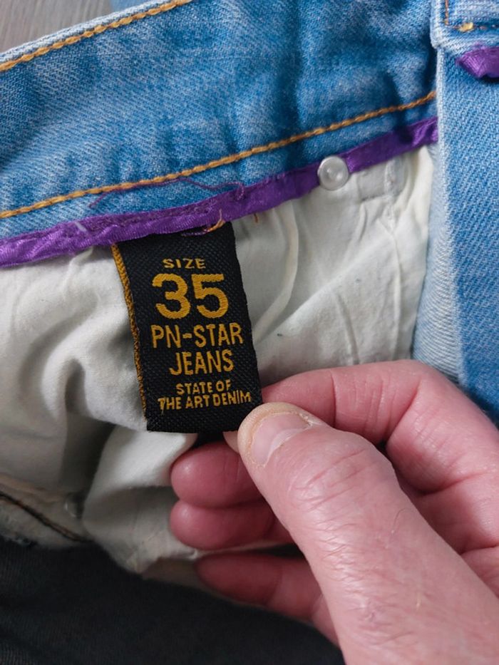 Jeans PN - Star taille US 35 (45) en très bon état. Vous avez des mesures en photos. 100% coton. Juste légère usure sur un pied voir dernière photo !!! #hommexxljenny92360 #hommexljenny92360