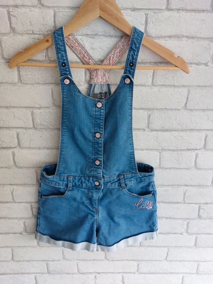 Salopette short Orchestra taille 10 ans en très bon état. 75% coton 24% polyester 1% élasthanne. Ajustable à la taille voir photo. #10ansjenny92360
