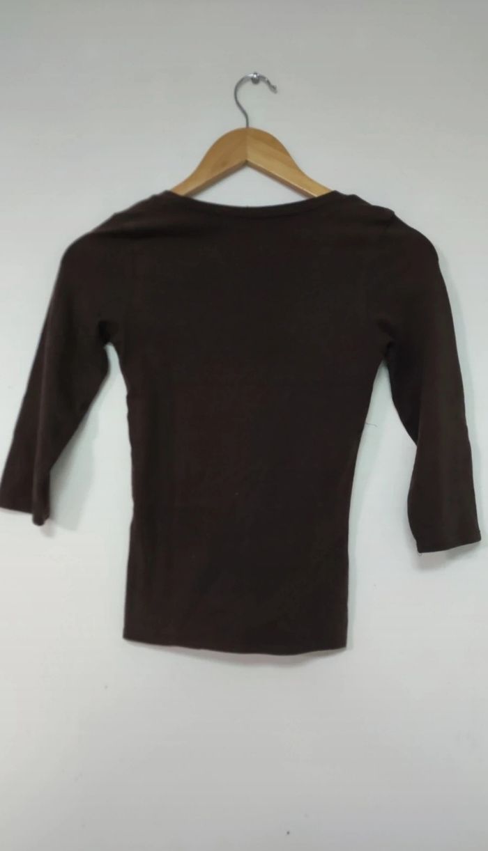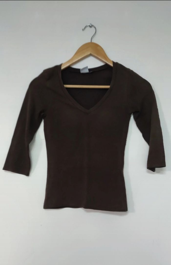 Tee-shirt stretch col V manches 3/4 Taille 34 Marque we fondamentals Matière coton Couleur marron Très agréable sur soi En très bon état