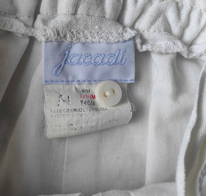 Salopette blanche en très bon état de la marque Jacadi pour garçon taille 12 mois/ 1 ans