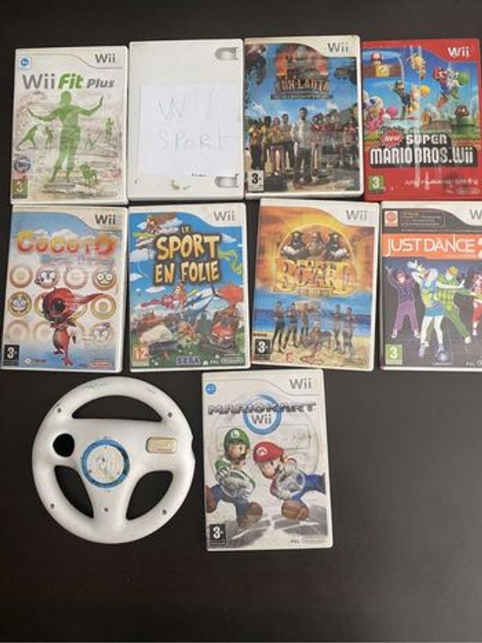 Je vends une Wii avec 9 jeux qui fonctionnent parfaitement bien. La console fonctionne très bien également. Il y a 2 manettes classique et une autre manette Nunchuk compris dans le lot et un volant. À venir chercher sur place. J’habite en Savoie.