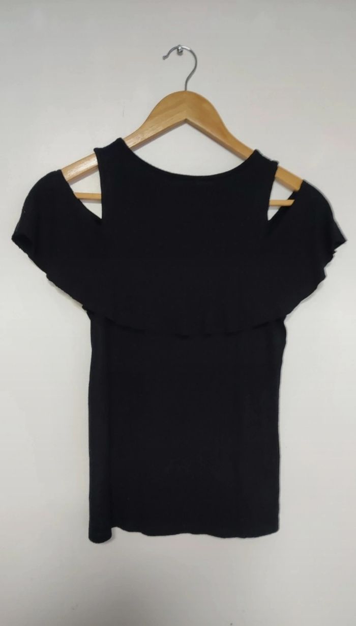 Top épaules dénudées à volants Marque Kiabi, Taille 34 Noir uni Matière viscose, Elasthanne Très bon état