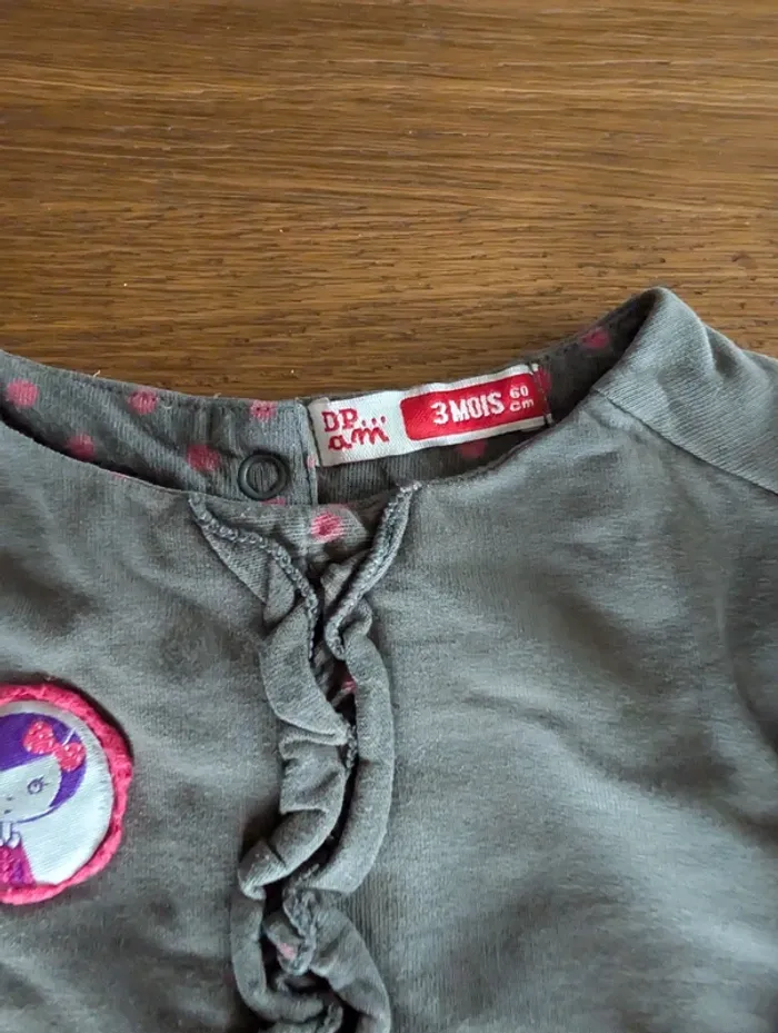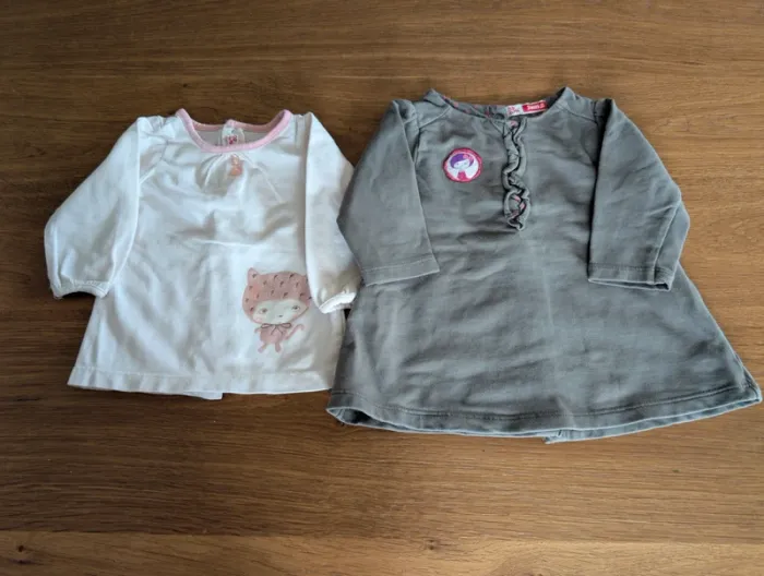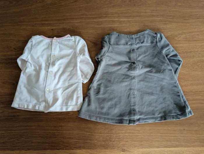 2 hauts à manches longues, taille 3 mois, marque DPAM (Du Pareil Au Même). En très bon état.