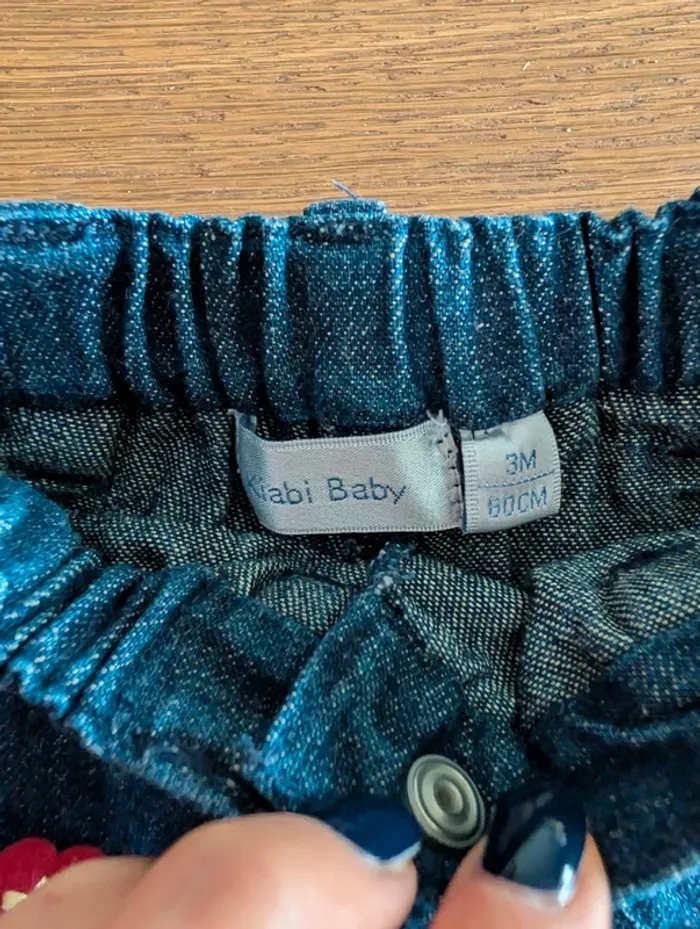 Pantalon type jean, taille 3 mois, marque Kiabi Baby. En parfait état.