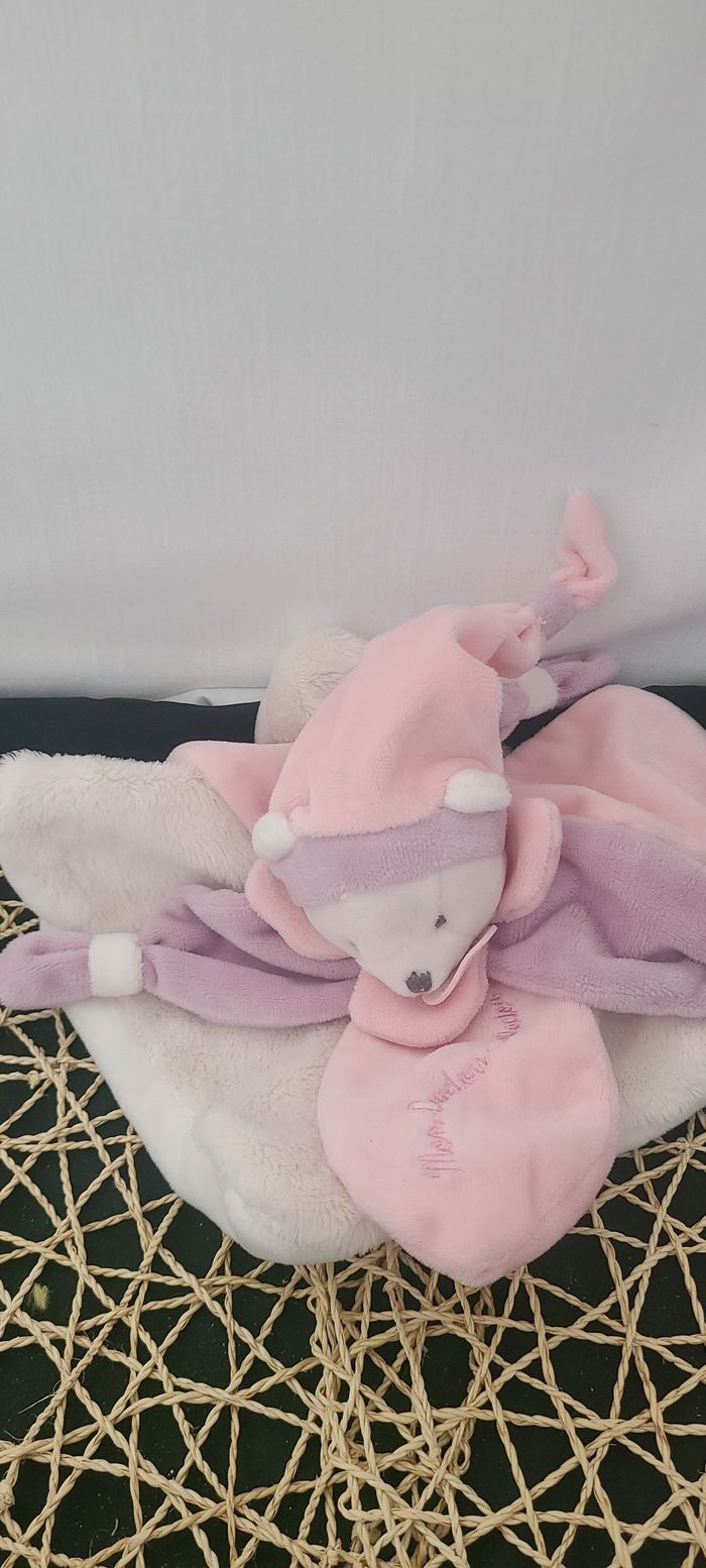 Doudou et compagnie plat ours blanc rose parme Collector J'aime mon doudou - photo numéro 1