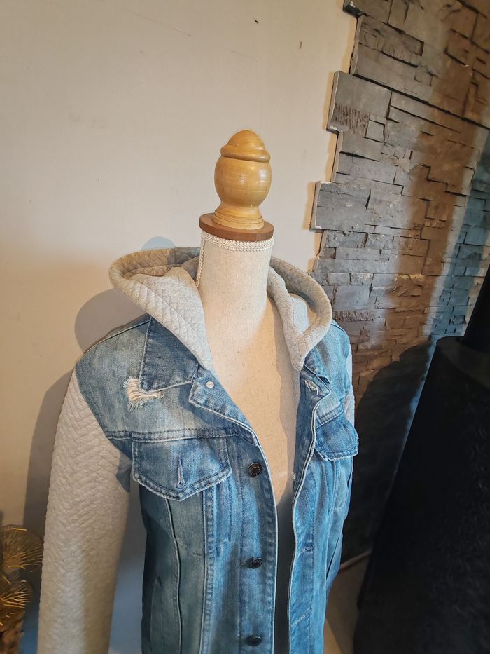 Veste en jean bi matière homme primark taille s 36 10 euros Envoi en relais Bleu et gris Avec capuche