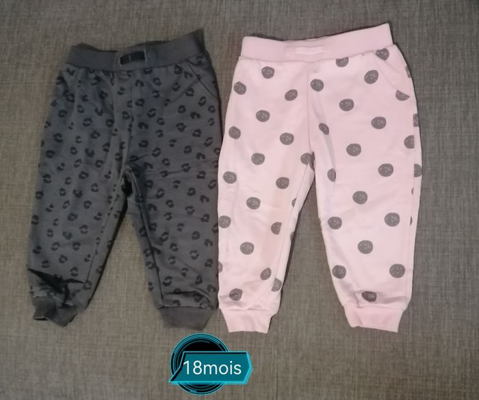 2 pantalons filles, taille 18mois Marque :tex. Rose /gris 99%coton 1%elasthane. Taille élastique non réglable. Porté. Le lots 7€