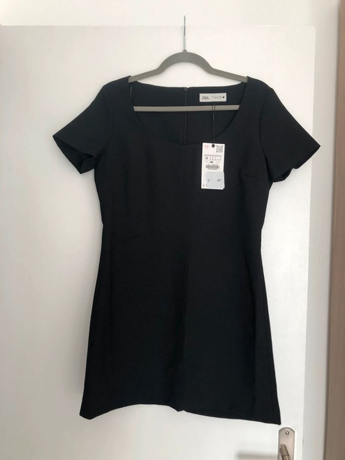 Bonjour je vends une superbe belle robe courte de couleur noire de la marque Zara. C’est une taille M Elle est neuve avec étiquette. Prix d’achat 45.95 euros Encolure ronde et manches courtes Fermeture dans le dos par zip invisible dans la couture. Très classe Parfaite pour les beaux jours. Les soirées et sorties ou encore même pour le bureau Elles est ultra tendance s’accorde facilement avec tout veste en jean gilet blazer pull veste en cuir baskets bottes chaussure etc … N’hésitez pas à consulter mes autres annonces en ligne