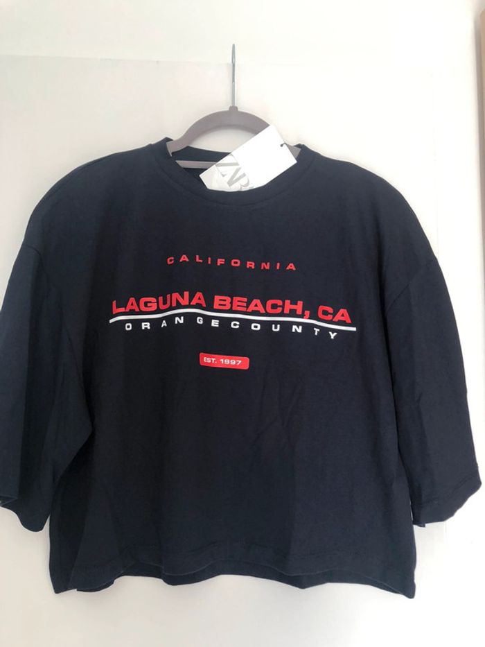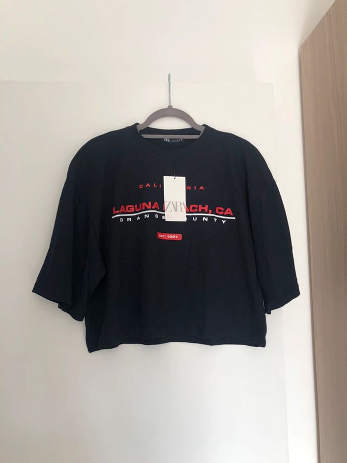 Superbe beau t-shirt court crop Varsity Zara neuf avec étiquette taille L - photo numéro 1