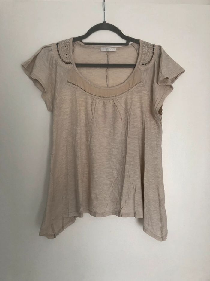 Superbe beau t-shirt promod beige taille M - photo numéro 3