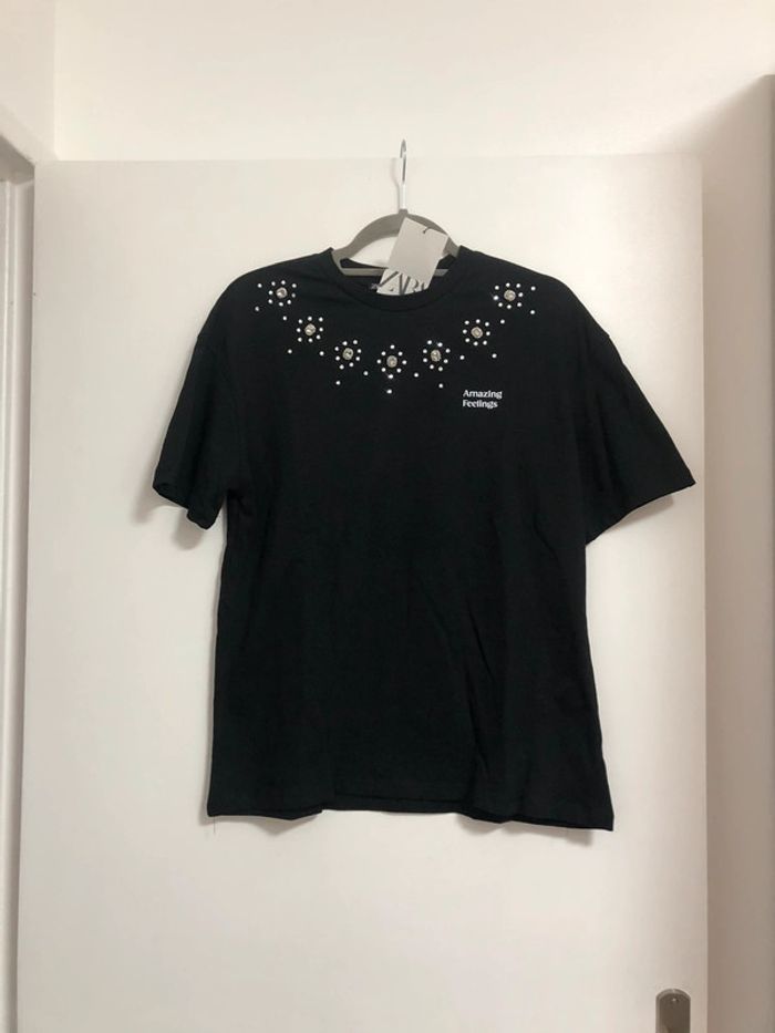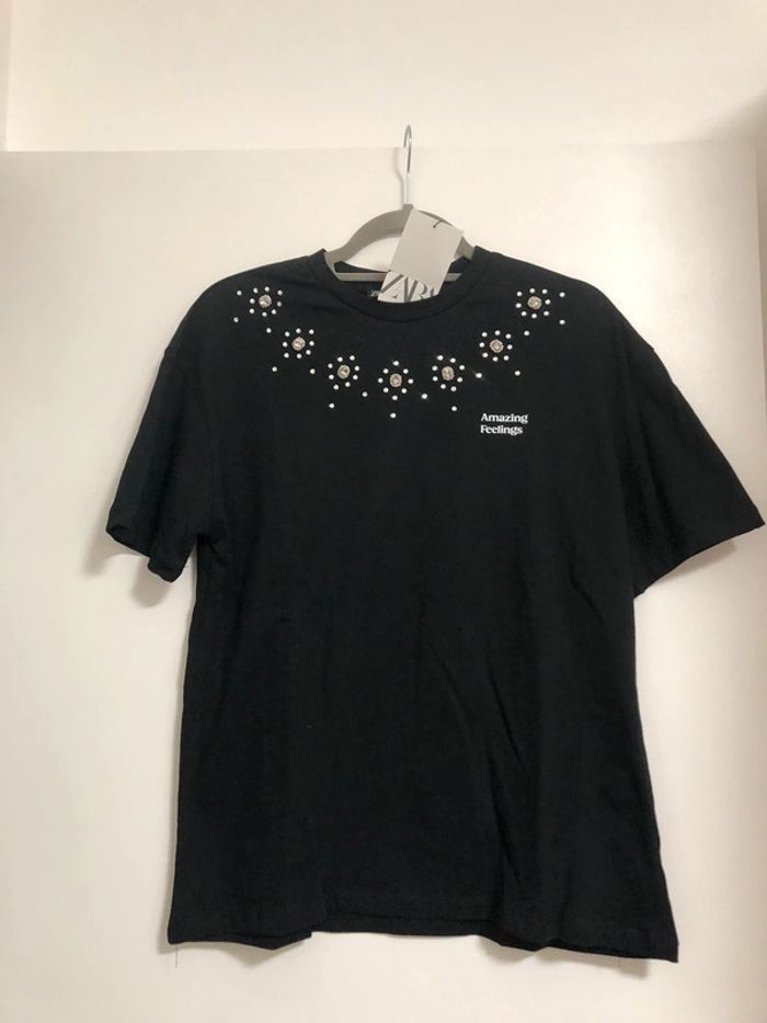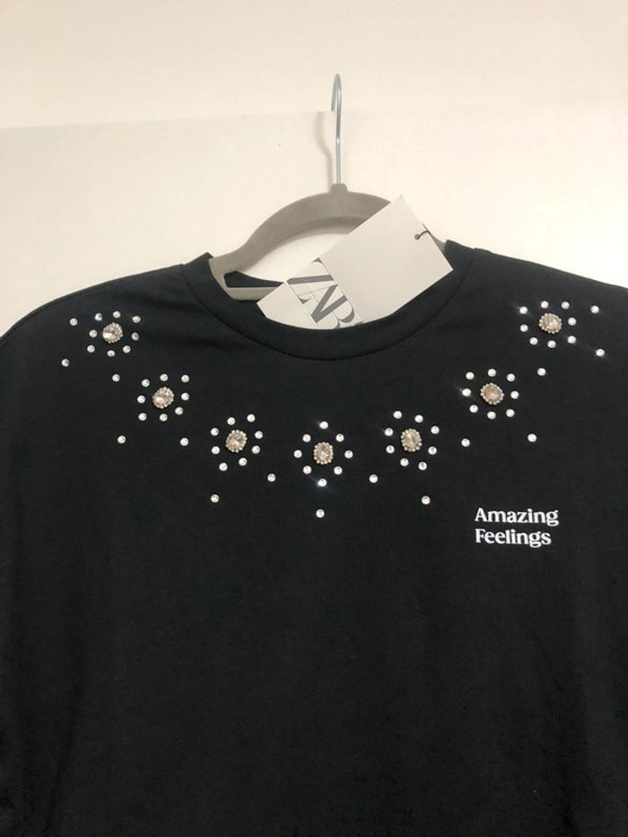 Superbe beau t-shirt avec strass et bijoux Zara neuf avec étiquette taille S - photo numéro 1