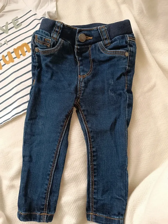 🎀 jolie petit ensemble tape a l'oeil 6 mois jeans t-shirt blanc 🎀 - photo numĂ©ro 3