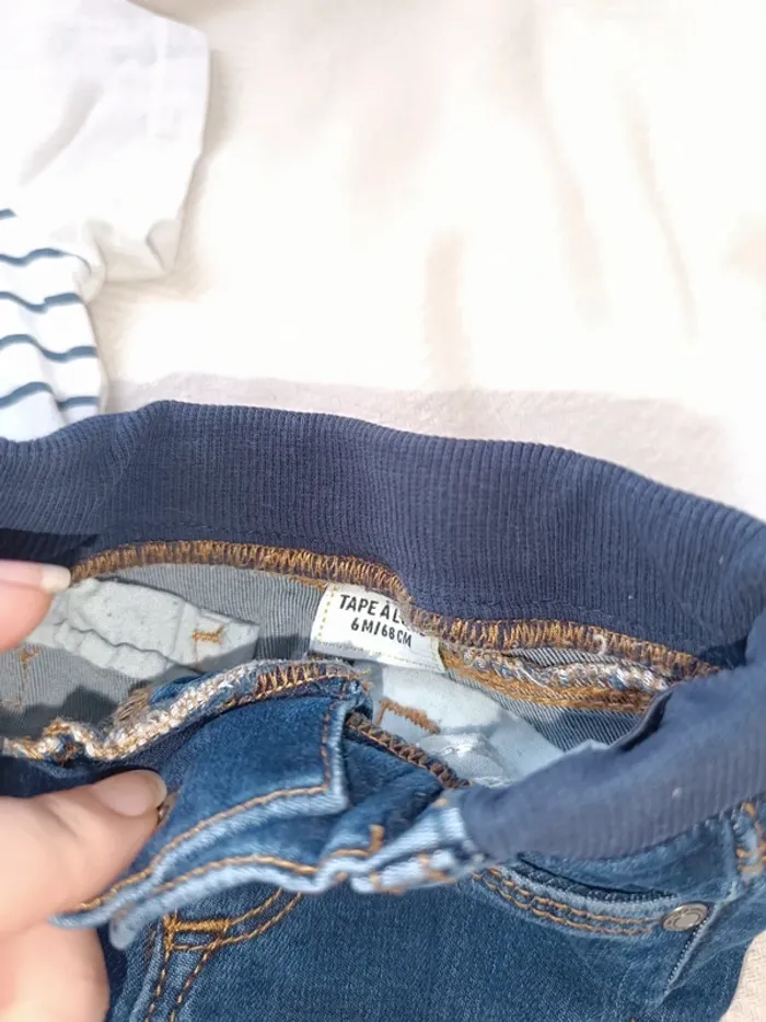 🎀 jolie petit ensemble tape a l'oeil 6 mois jeans t-shirt blanc 🎀 - photo numĂ©ro 4