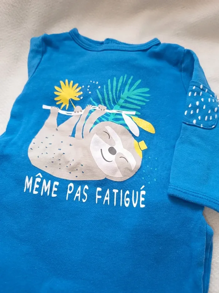 🎀 pyjamas lĂ©ger bleu Motif paresseux taille 6 mois GĂ©mo 🎀 - photo numĂ©ro 2