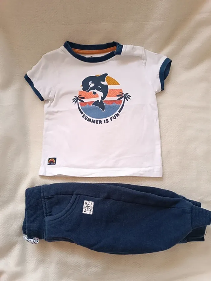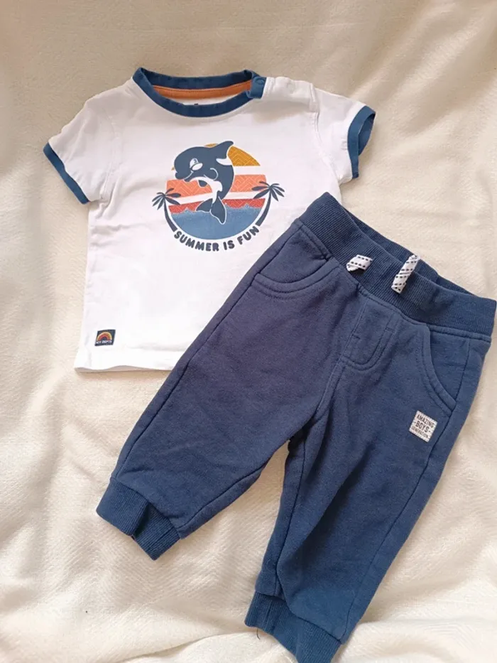 🎀 jolie petit ensemble GĂ©mo jogging bleu marine t-shirt blanc taille 6 mois 🎀 - photo numĂ©ro 1
