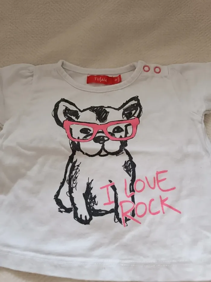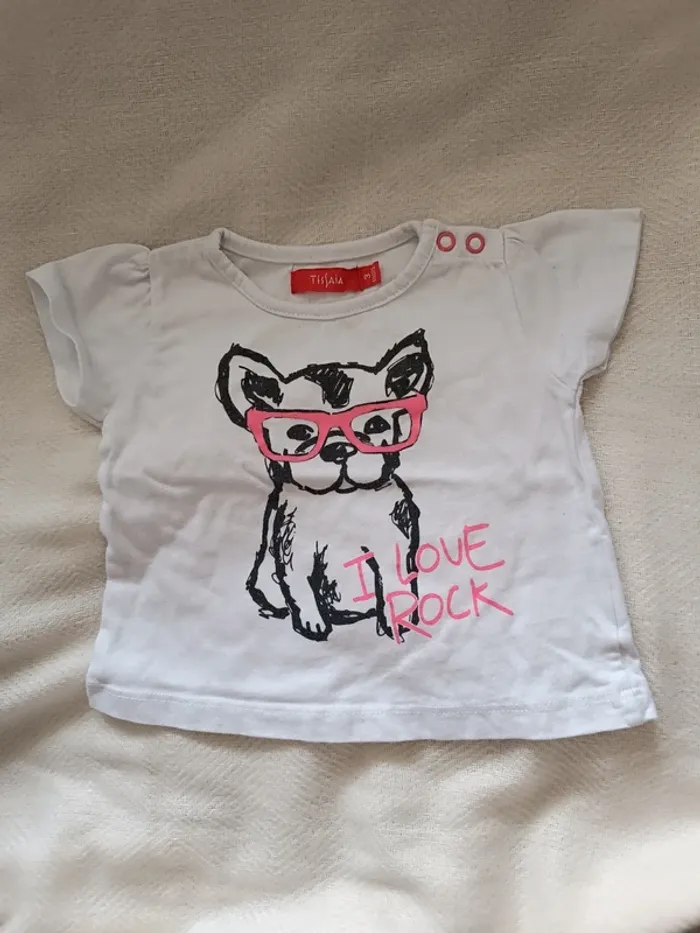 T-shirt blanc Motif chien taille 3 mois très bon état #marjorie2105_fille_taille3m