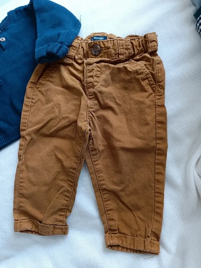 🎀 jolie petit ensemble Kiabi haut bleu marine et pantalon caramel taille 9 mois 🎀 #marjorie2105_garçon_taille9m