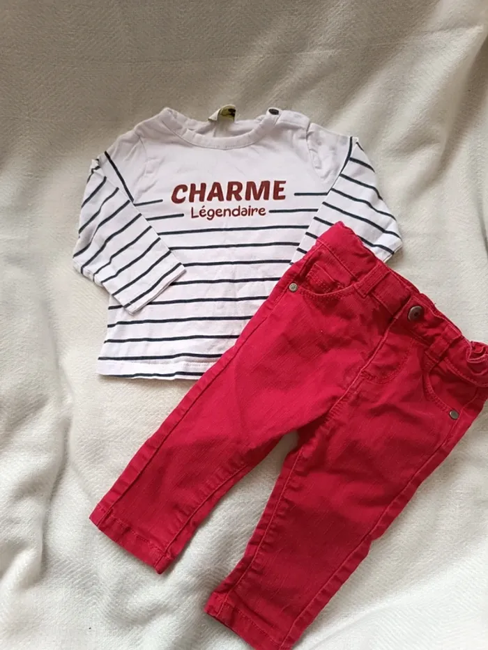 🎀 jolie ensemble tape a l'oeil 6 mois jeans rouge haut blanc rayĂ© 🎀