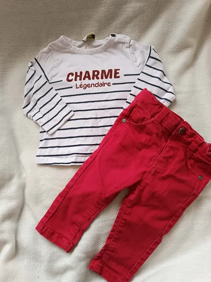 🎀 jolie ensemble tape a l'oeil 6 mois jeans rouge haut blanc rayĂ© 🎀 #marjorie2105_garçon_taille6m