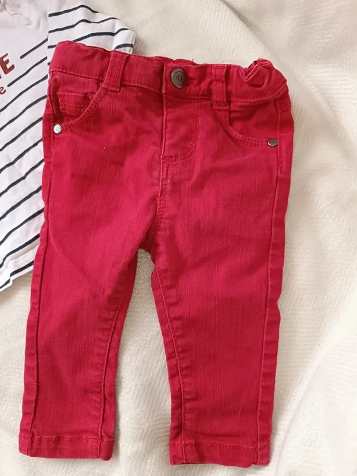 🎀 jolie ensemble tape a l'oeil 6 mois jeans rouge haut blanc rayĂ© 🎀 - photo numĂ©ro 1