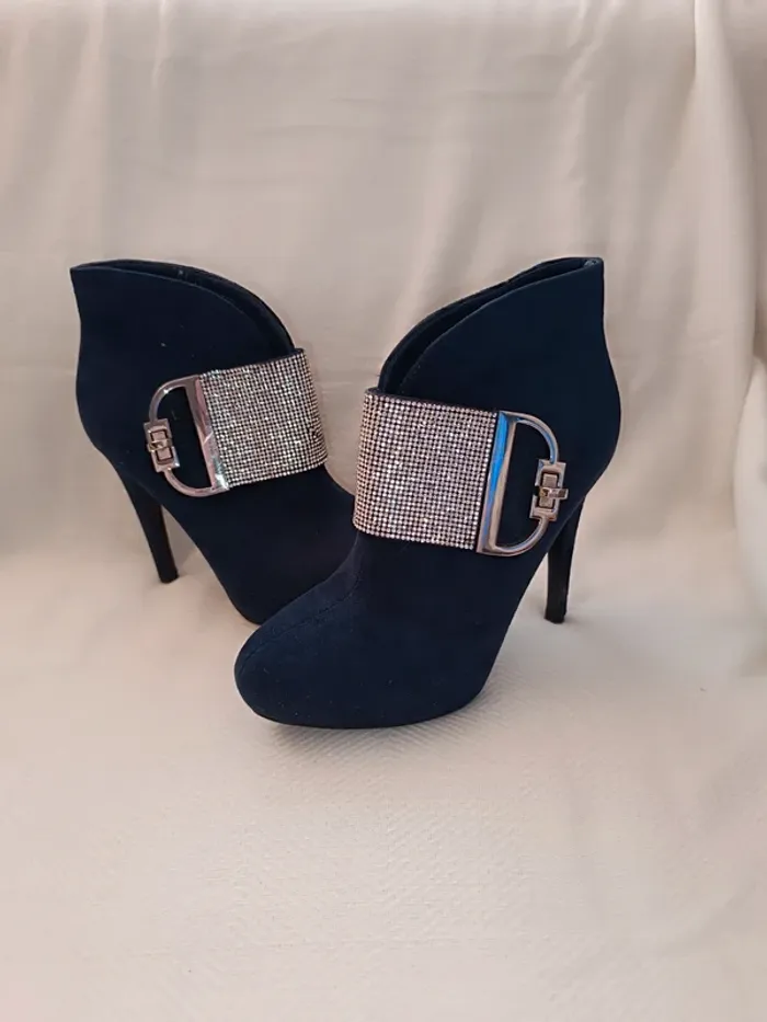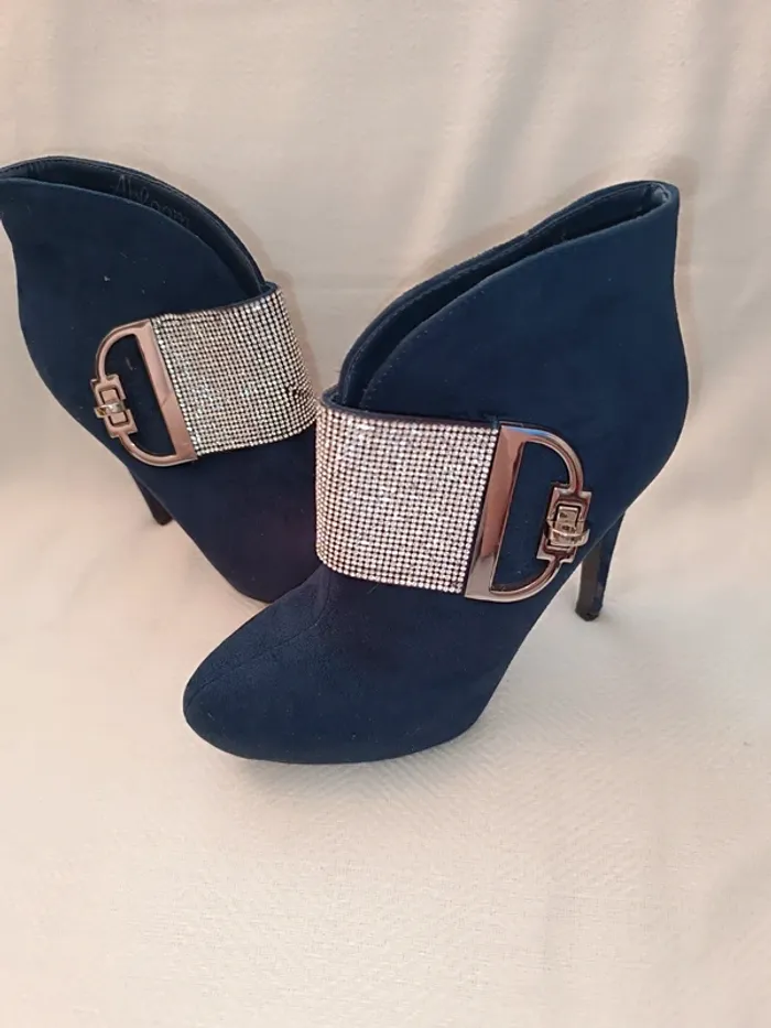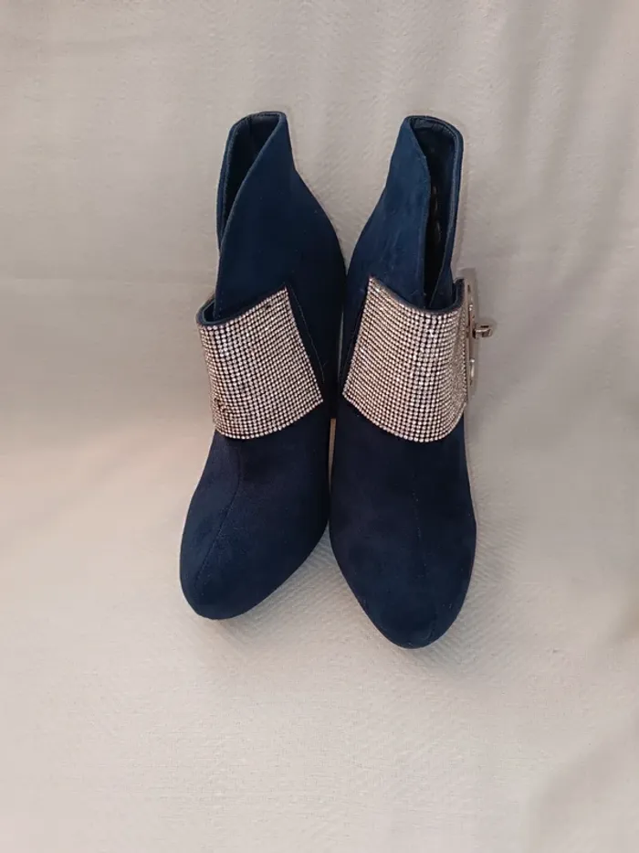 🎀 magnifique bottine a talon bleu marine taille 37 avec des strass 🎀