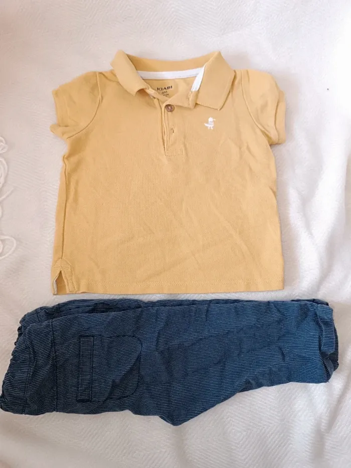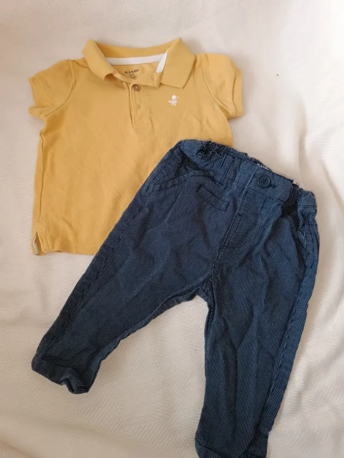 🎀 jolie ensemble garçon Kiabi polo jeune et pantalon bleu marine a rayures taille 6 mois 🎀 - photo numĂ©ro 1
