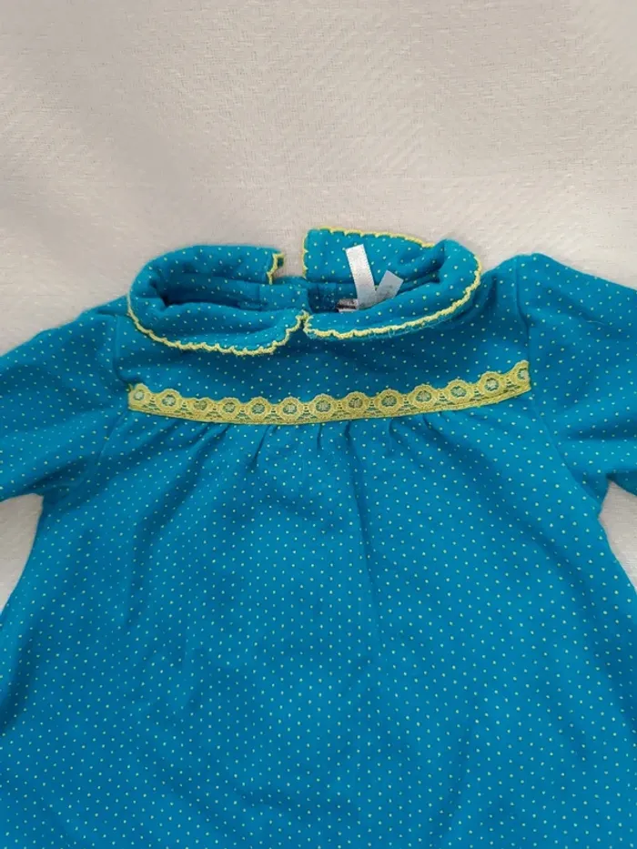 🎀 jolie t-shirt manche longue bleu et vert motif point vert taille 1 mois orchestra 🎀