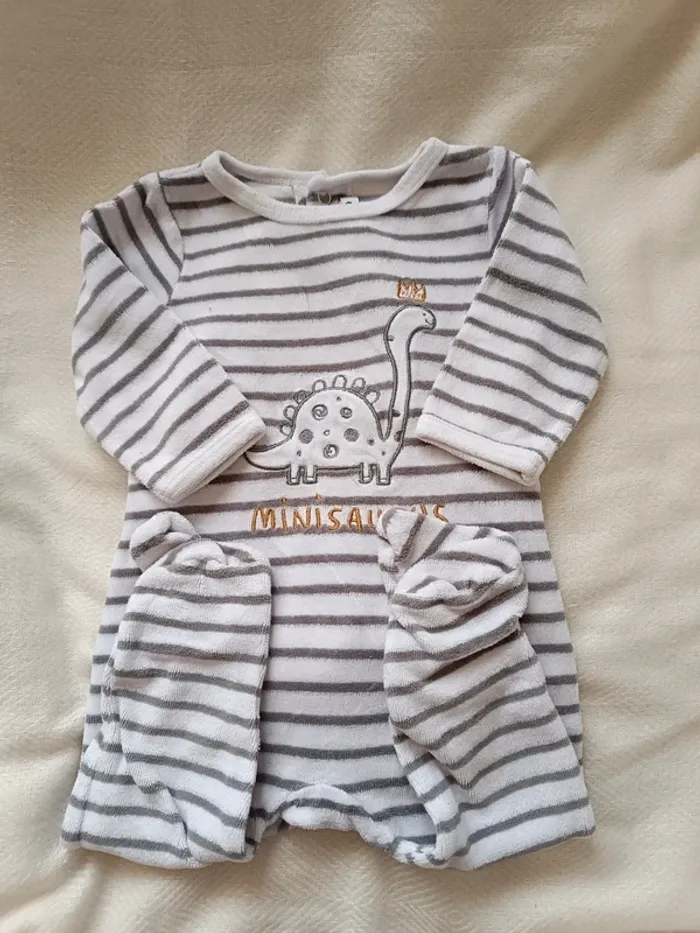 🎀 pyjama Ă©pais blanc et gris GĂ©mo taille 6 mois 🎀 - photo numĂ©ro 1