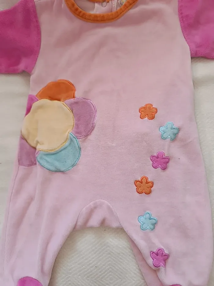 Très jolie pyjama rose avec fleur multicolore taille 1 mois #marjorie2105_fille_taille1m