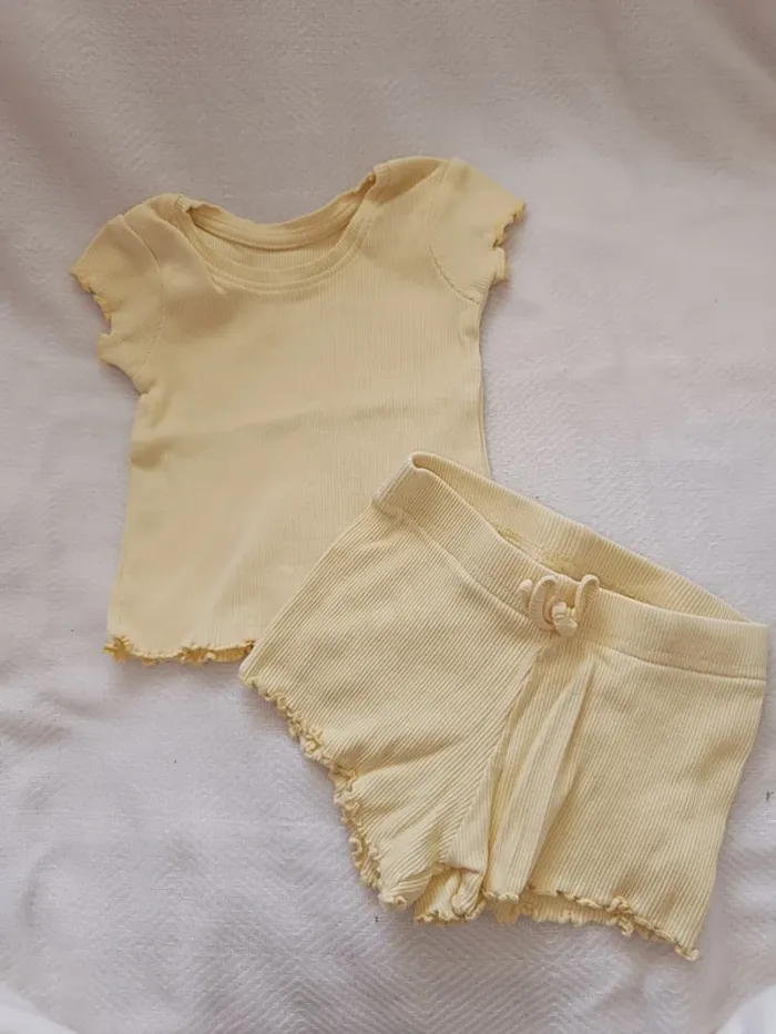 🎀 jolie ensemble short et t-shirt jaune taille 0.3 mois 🎀
