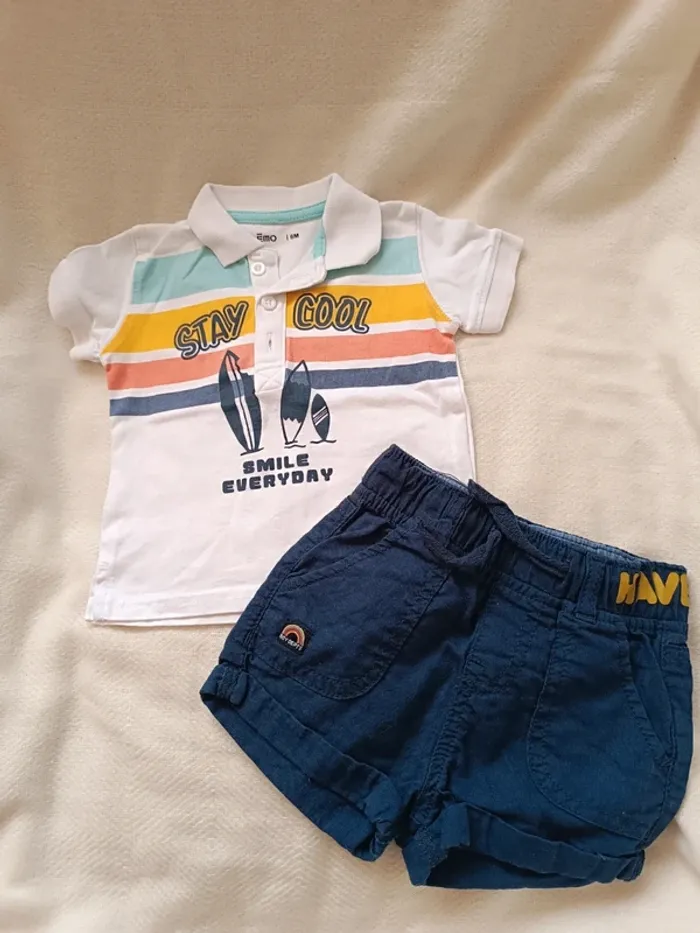 🎀 jolie petit ensemble short bleu marine et polo blanc taille 6 mois GĂ©mo 🎀