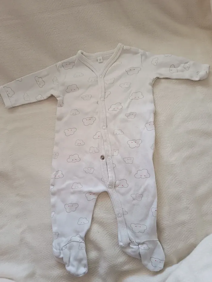 🎀 pyjamas blanc motif nuage taille 50cm naissance 🎀 - photo numéro 1