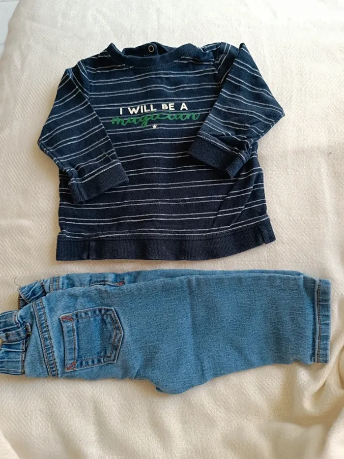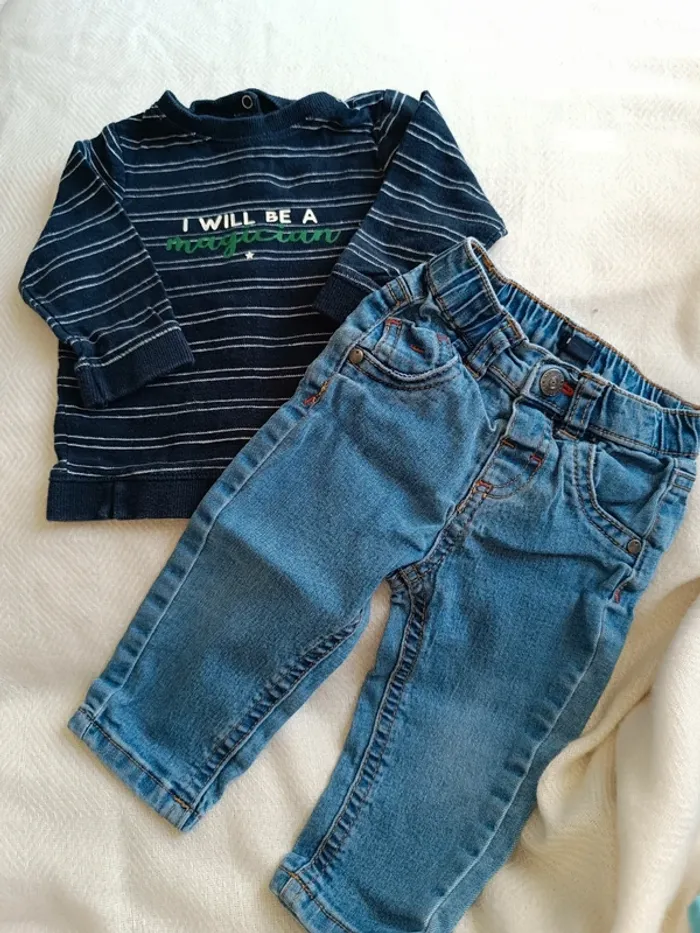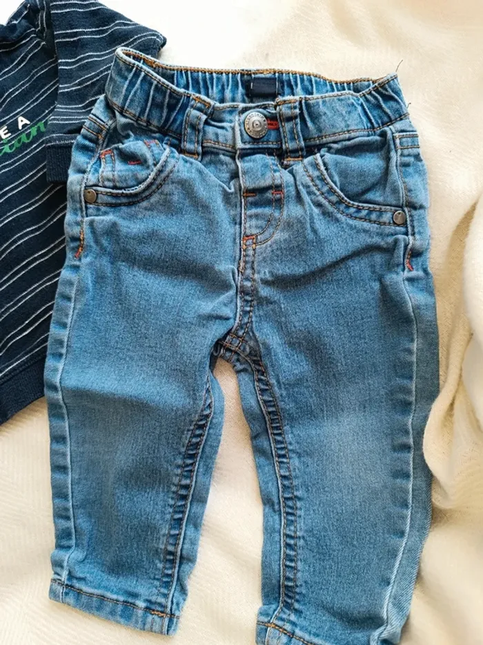 🎀 jolie petit ensemble Kiabi haut bleu marin et jeans taille 9 mois très bon état 🎀 #marjorie2105_garçon_taille9m