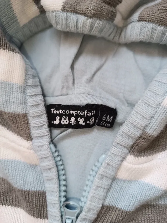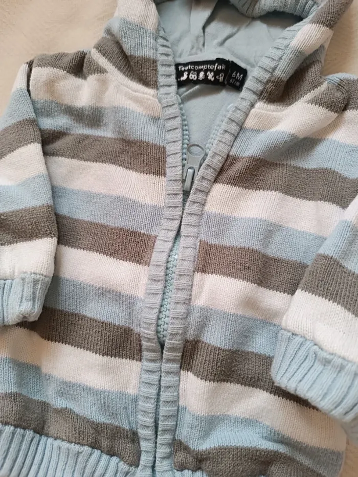 🎀 veste a rayures bleu blanc gris taille 6 mois 🎀 - photo numéro 3